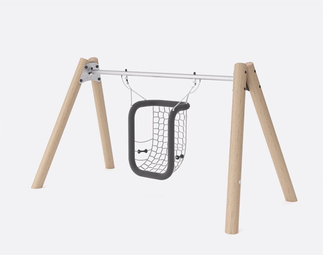 Состоят из опорных стоек, перекладины и сиденья «Гнездо» с подвесами, выполненного из высокопрочного каната. Для большего комфорта, на сиденье установлены пластиковые ручки.
