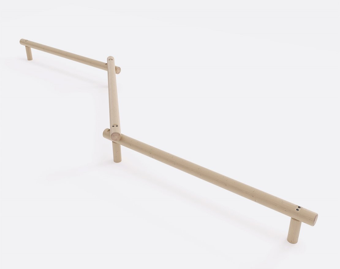 Состоит из опорных стоек и перекладин. Крепежные элементы закрыты заглушками.