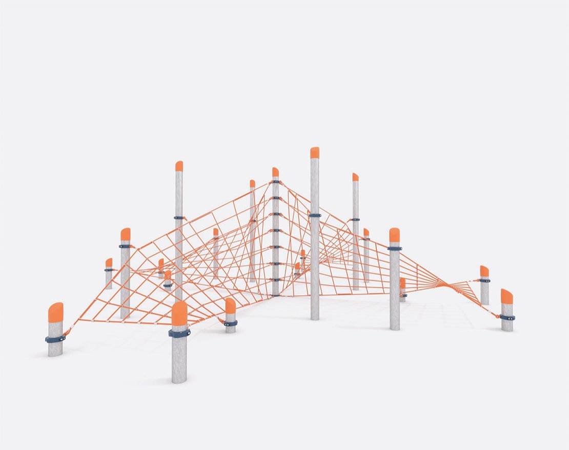 Канатный комплекс серии Skat. Состоит из канатной части и опорных металлических столбов, установленных на разной высоте.