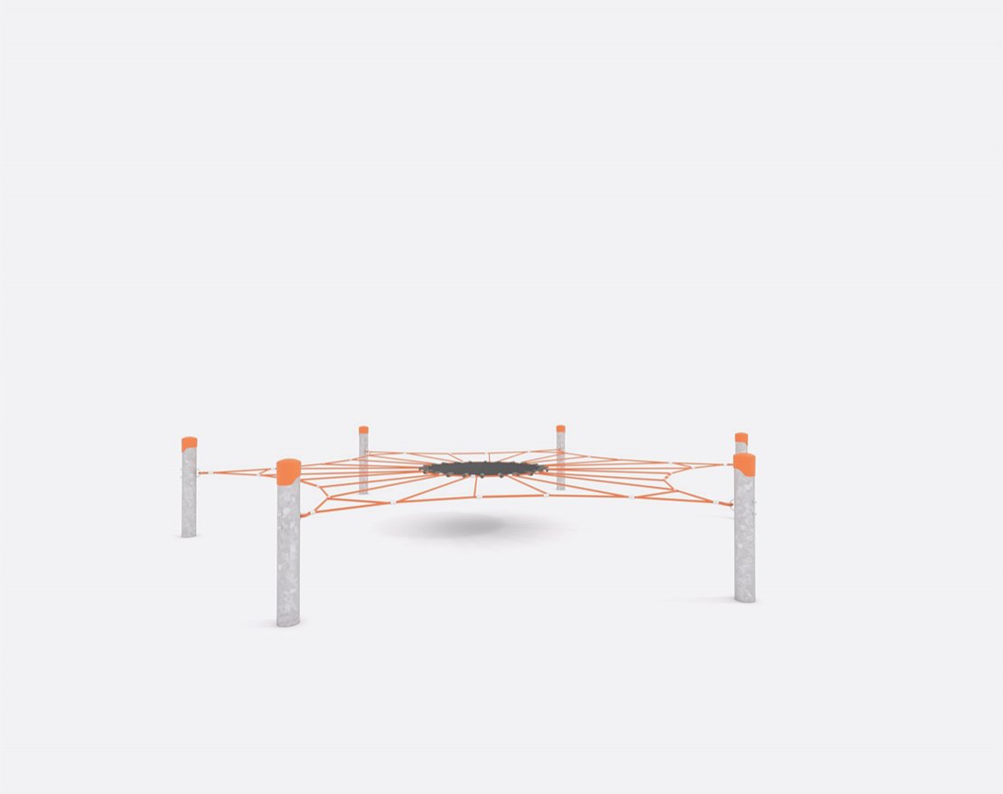 Канатная конструкция серии Skat. Представляет собой батут, выполненный из металлических опорных столбов, канатной сетки и резиновой конвейерной ленты.
