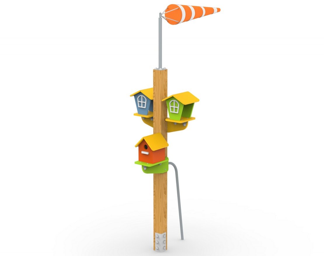 Ветроуказатель со скворечниками предназначен для размещения и эксплуатации на детских площадках в школах, детских садах, парках, дворах и других местах отдыха с целью организации досуга и развития детей. Может эксплуатироваться круглогодично во всех климатических зонах. Ветроуказатель со скворечниками способствует формированию навыков ухода за птицами и определению направления ветра. Изделие представляет собой сборно-разборную конструкцию с декорациями.