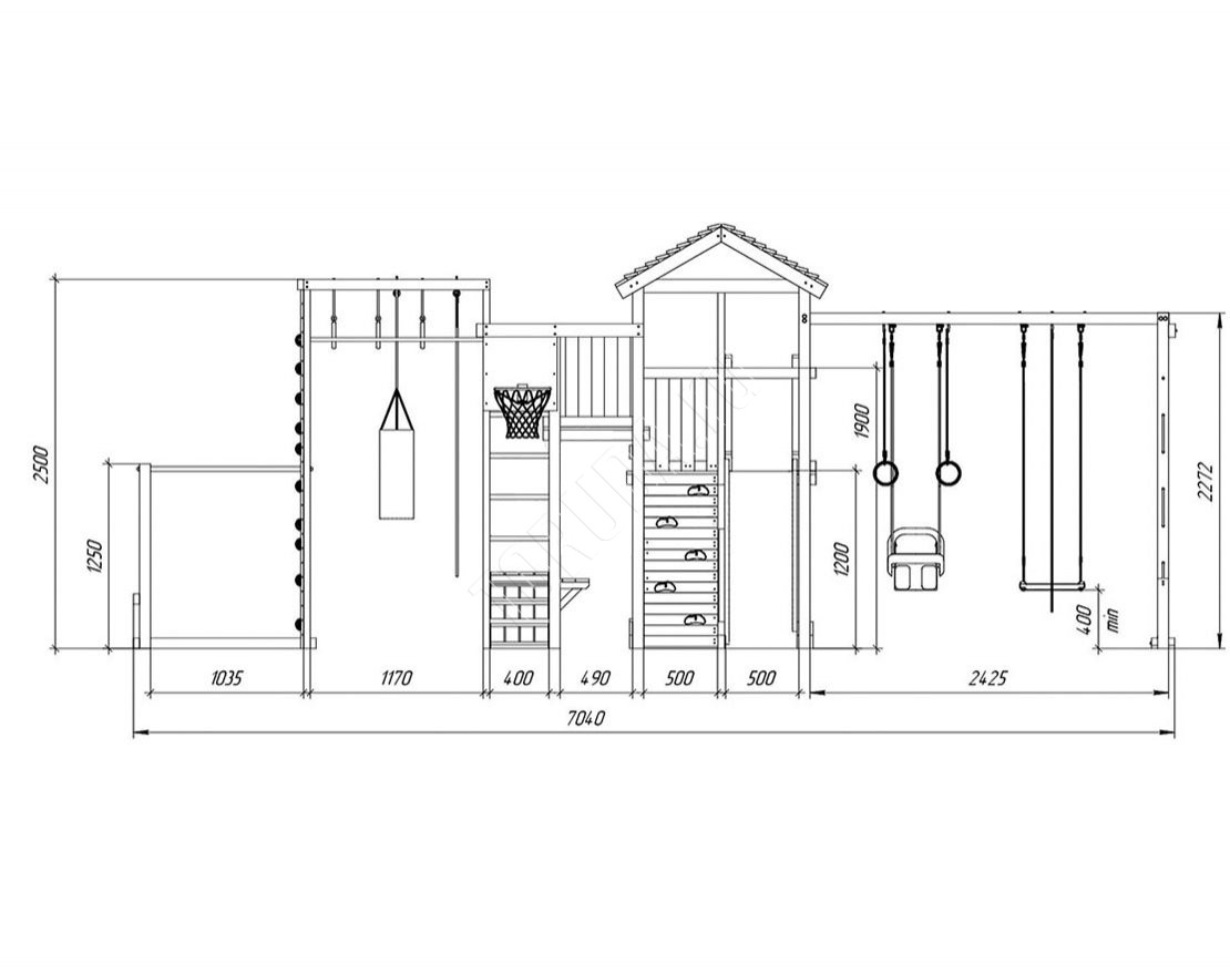 В основе натуральный материал – клееный брус 75х75 мм, изготовлена из безопасных материалов. Конструкция и элементы качельных подвесов разработаны и произведены согласно ГОСТ.