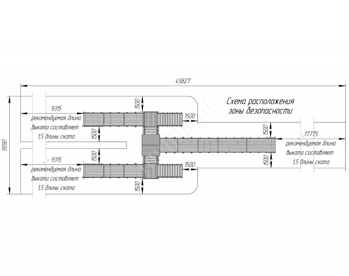 Конструкция тщательно спроектирована и выполнена из качественных материалов, что гарантирует безопасность и долгий срок службы. Каркас изготовлен из надежного клееного бруса, а в качестве защитного покрытия использован лакокрасочный состав с разрешающим сертификатом для применения на детских площадках.