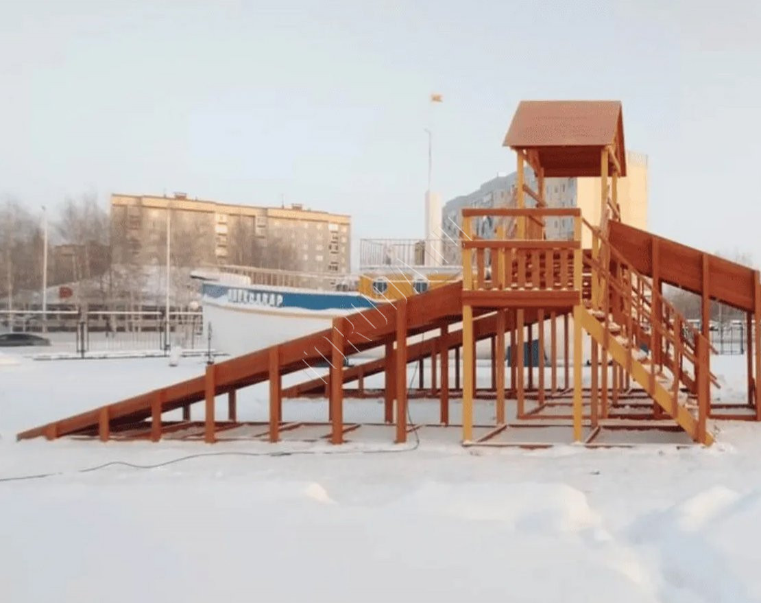 Активные дети готовы проводить время на свежем воздухе даже зимой. А деревянная горка «TORUDA Север» - 11 – лучшее сезонное предложение для просторных спортивно-игровых площадок.