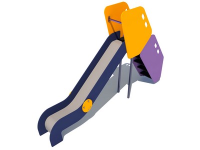 Скат горки изготовлен из единого листа нержавеющей стали толщиной 1,5 мм и утоплен в паз фанерного борта. Наличие бортов горки высотой 100 мм обязательно в целях исключения травмирования детей. Горка должна иметь стартовую площадку с перекладиной сечением Ø 27 мм, заставляющую ребенка присесть, полосу разгона и участок торможения. Ступеньки лестницы горки должны быть выполнены из ламинированной нескользящей влагостойкой ламинированной фанеры толщиной 18 мм.