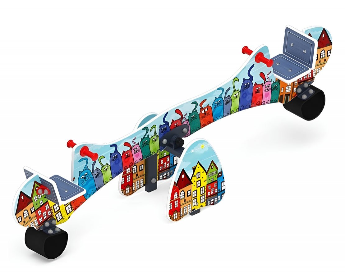 Выполнен из влагостойкой фанеры толщиной не менее 24 мм, стилизован под «Космопорт», окрашен с нанесением принта- "Коты". Размер каркаса: 2200х405х24 мм.