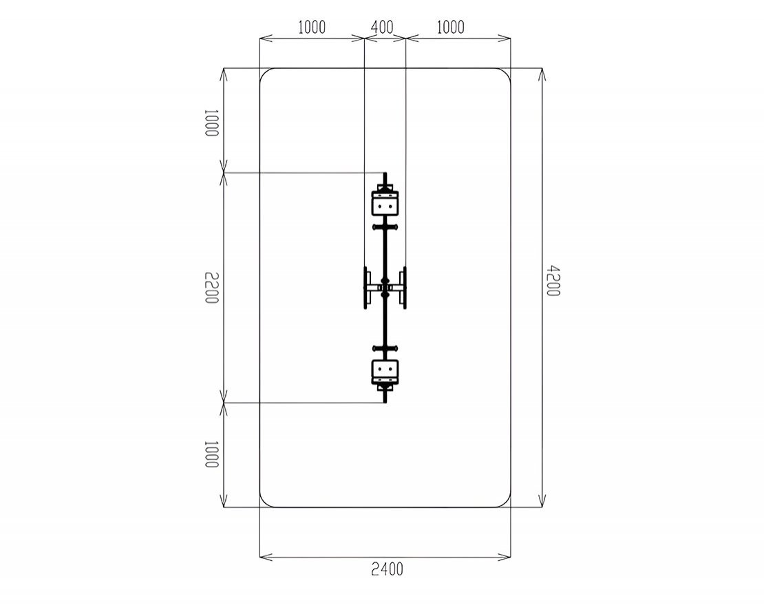 Сварная конструкция выполнена из стальной трубы прямоугольной 60х30х3 мм, трубы прямоугольной 50х25х2 мм и трубы наружным диаметром 27 мм, а также скобы, втулки и двух подшипников, окрашен порошковой краской в графитово - серый цвет. Каркас с двух сторон закрыт декоративными щитами из влагостойкой фанеры толщиной не менее 18 мм. Щиты окрашены с нанесением принта - "Коты". Размер каркаса опоры: 735х370х300 мм (до бетонирования).