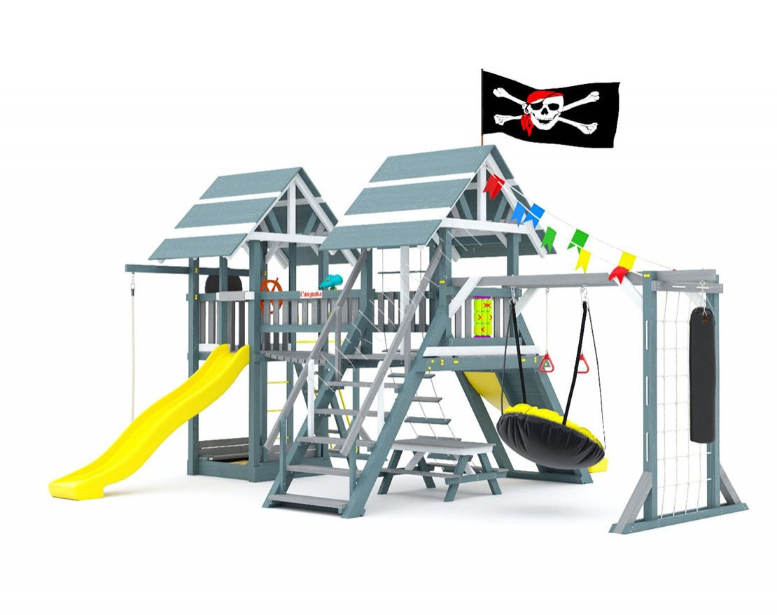 Площадка Галиот 8 обладает довольно широким функционалом (который по желанию можно легко расширить). А на качелях могут кататься даже родители! Детская площадка предназначена для дачи, коттеджа.