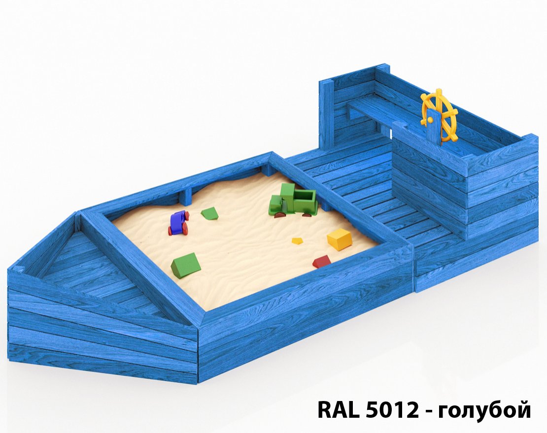 Детская песочница-кораблик и штурманская рубка со штурвалом.