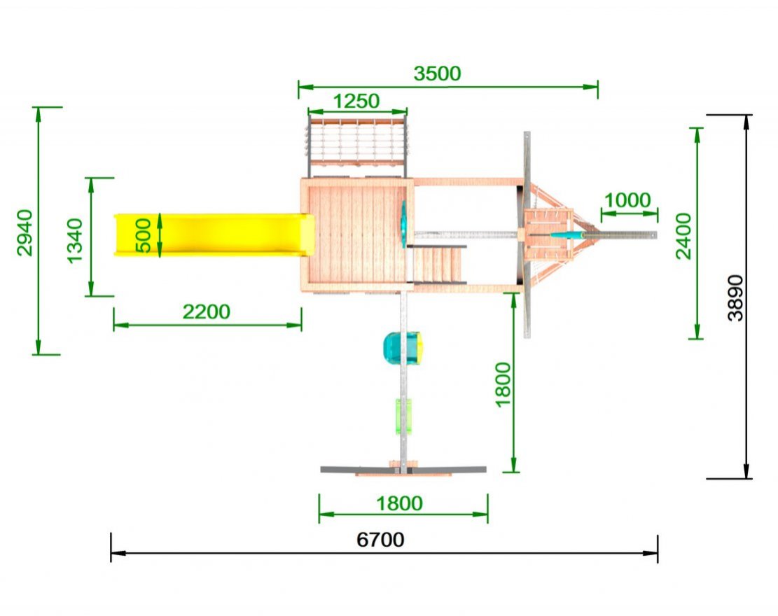 - игровая площадка с ограждениями 1300х1300 мм, высота ограждений 600 мм