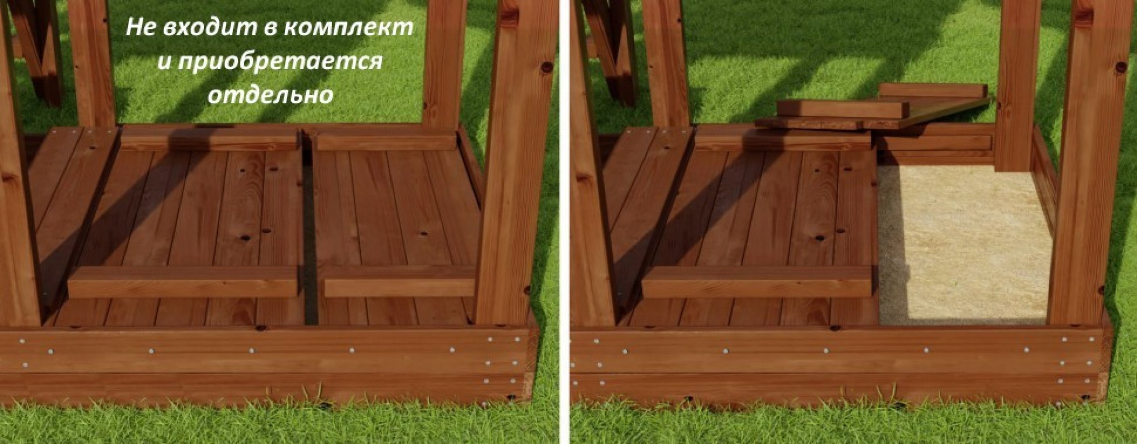 Конструкция надежная и безопасная. Площадка выполнена из карельской сосны первого сорта и окрашена методом полного погружения каждой детали гипоаллергенной краской Galamix, что гарантирует высокое качество и экологичность.