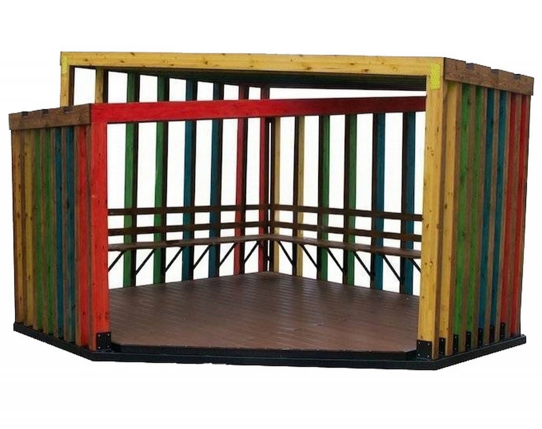 Деревянные части: Брус из хвойных пород древесины. Покрытие - атмосферостойкая лессирующая акриловая пропитка с лаком. Стандартные цвета: Палисандр, Махагон, Тик.