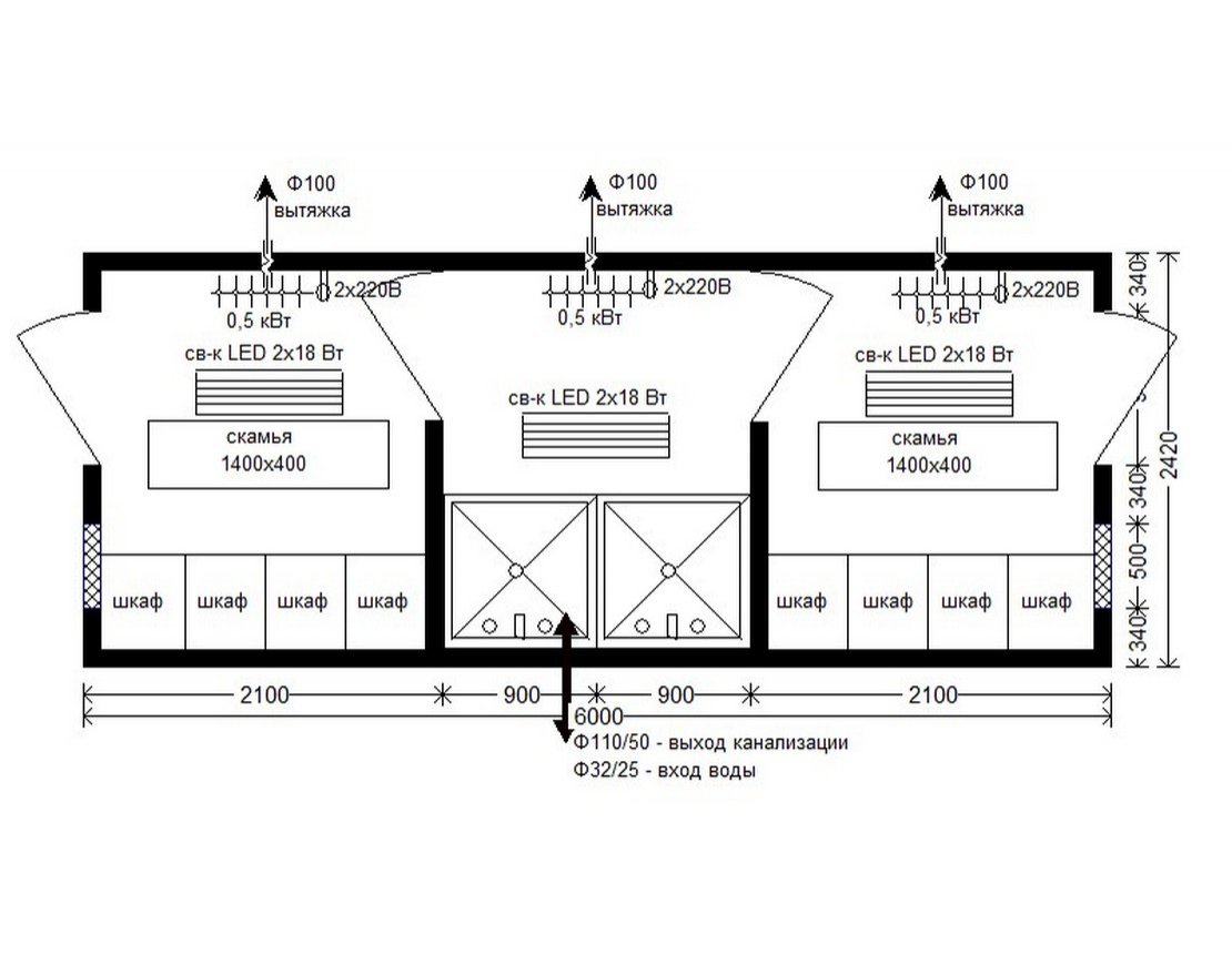 Санпропускник с 2 душевыми и 2 раздевалками 411