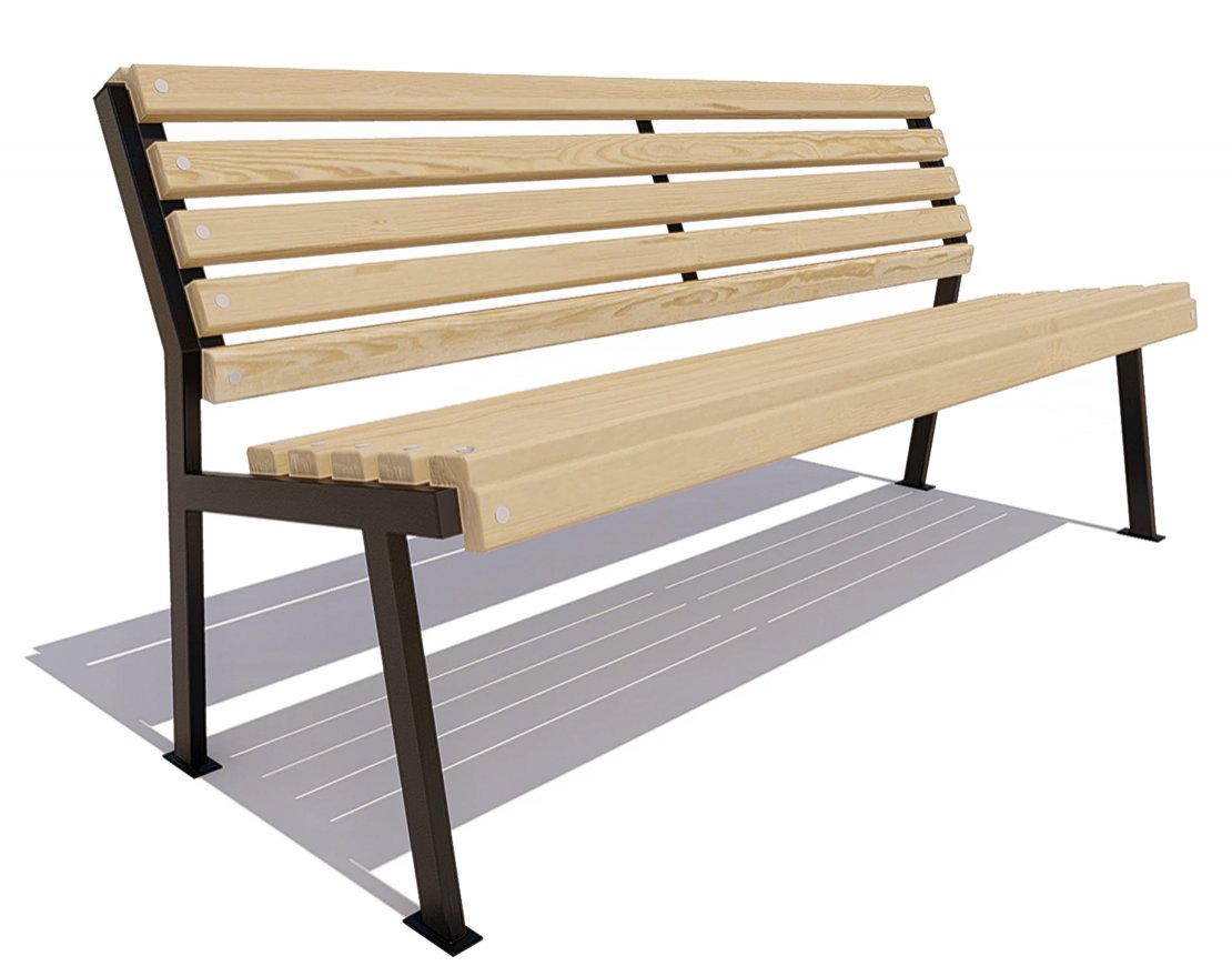 Каркас выполнен из стального профиля. Покрыт порошковой полимерной краской. Стандартный цвет по умолчанию – черный муар. Возможность выбора цвета по шкале RAL. Сиденье и спинка: Брус из хвойных пород древесины, обработан экологичными инновационными лакокрасочными материалами, что подтверждает Свидетельство ЕвАзЭС. Стандартный цвет по умолчанию – палисандр. Возможность выбора цвета из палитры. Тип крепления: анкерный.