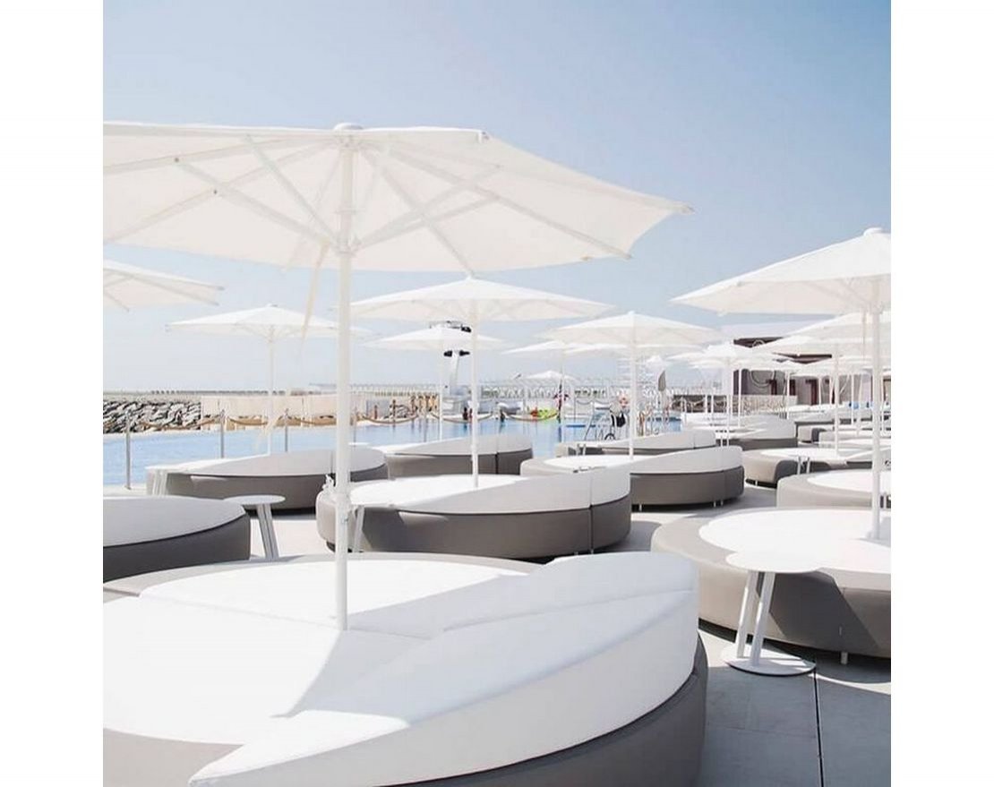 Профессиональный зонт с центральной опорой из алюминия, что обеспечивает высокую устойчивость модели. Он защитит от ярких солнечных лучей и создаст приятную затененную атмосферу в частных садах, открытых летних площадках кафе, баров и ресторанов, зоны возле бассейна.