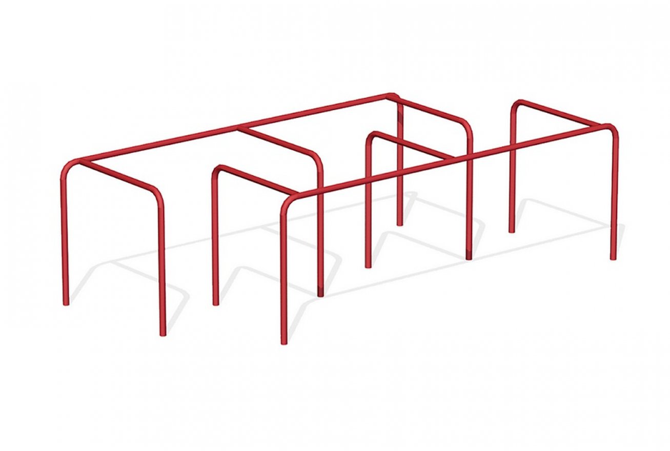 Спортивное оборудование представляет собой конструкцию из двух отдельностоящих цельносварных элементов, и в смонтированном виде представляет собой полосу препятствий. Возраст пользователя от 4 лет.