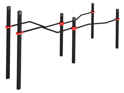 Комплекс состоит из шести опорных столбов высотой: 2 шт. - 1530 мм, 4 шт. - 1200 мм и четырех зигзагообразно изогнутых жердей длиной 1790 мм. Расстояние между центрами опорных столбов брусьев 608 мм - с одной стороны и 1008 мм - с другой стороны. Жерди крепятся к опорным столбам при помощи хомутов на высоте: 1200 мм в верхней части и 1000 мм в нижней части от поверхности основания. Длина комплекса не более 4200 мм.